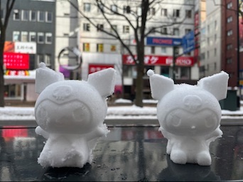 *We found a snow sculpture maker in the shape of Kuromi, a popular Sanrio character. We had lots of fun putting them up all around the city.