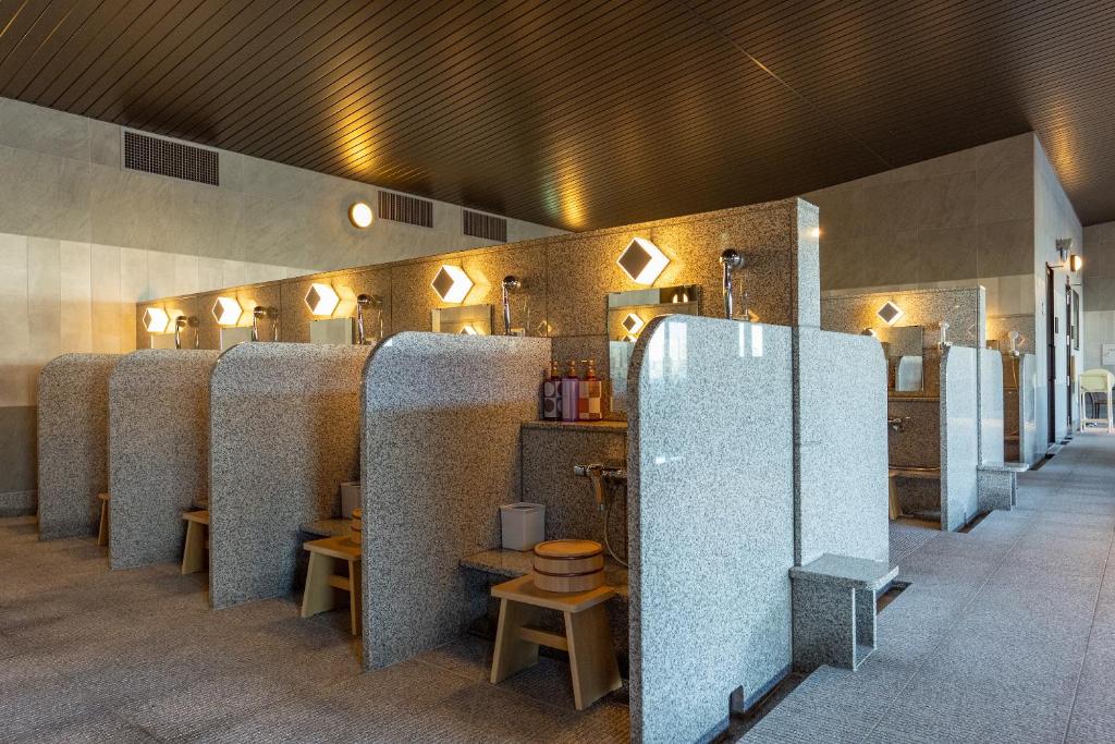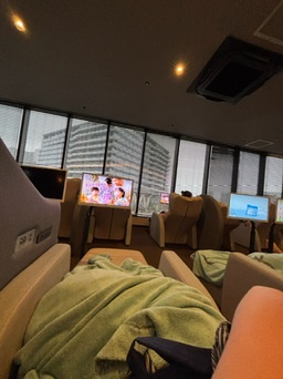 Onsens are a type of Japanese public bath. You will go to the men’s or women’s side, shower yourself off, and then soak in hot springs. Since you are doing this with a lot of other people, it may feel uncomfortable for some tourists. My favorite onsen so far has been this one. They give you a robe to wear upon entry, there is a all you can eat buffet and dessert bar, and after your soak you can relax in “relaxation rooms” until 3 AM. Since you are not allowed to film in the bathhouse, I will show some photos from the web.